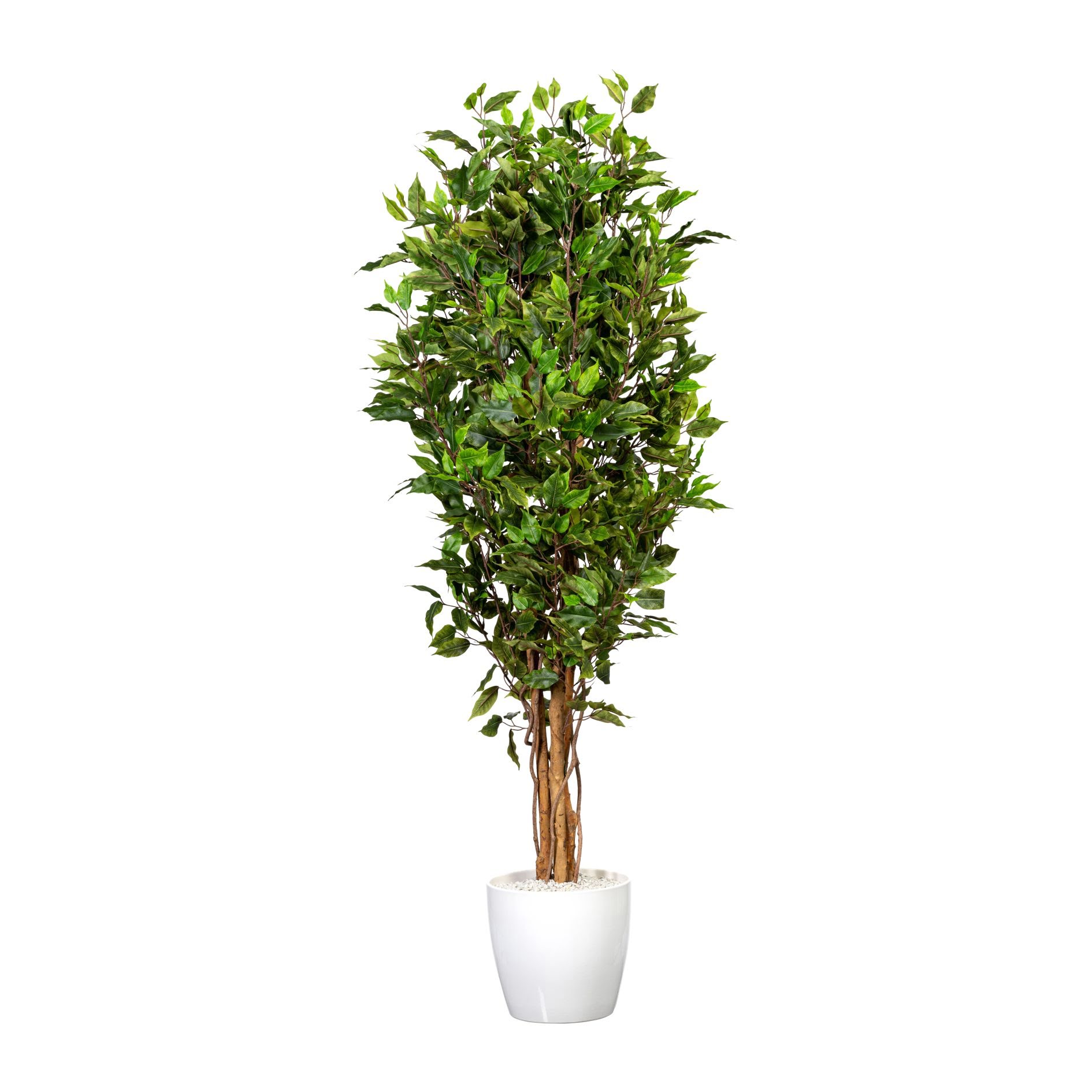150 cm - Ficus artificial decorativ Benjamina verde pe trunchi natural din lemn in ghiveci negru din plastic, tratat UV. Dimensiunea ghiveciului 14.5x13 cm. Acest copac artificial este perfect pentru a adauga culoare si ofera un aspect proaspat spatiului interior sau exterior. Plante artificiale decorative ideale pentru orice spatiu si nu necesita ingrijire.