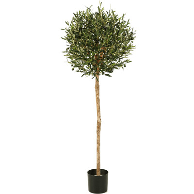 120 cm - Maslin artificial decorativ TWISTED pe trunchi natural, cu fructe in ghiveci din plastic negru 13x12 cm, 2288 frunze. Nuanta verde a frunzelor lungi, adauga culoare si ofera un aspect proaspat casei tale.