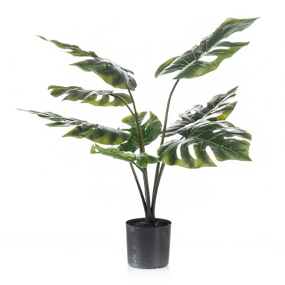 80 cm - Planta artificiala decorativ Monstera in ghiveci din plastic negru,12 frunze. Nuanta verde a frunzelor lungi, adauga culoare si ofera un aspect proaspat casei tale.