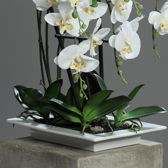 Adauga culoare decorului casei tale cu aceasta orhidee artificiala in ghiveci cu aspect 100% natural, chiar si la atingere. Orhideea artificiala in ghiveci are 62 cm inaltime. Fie ca vorbim de living, dormitor sau chiar birou, aceasta orhidee artificiala in ghiveci ofera un accent cochet si este o alegere potrivita pentru un decorr modern si elegant. Planta artificiala are frunze artificiale si flori artificiale cu variatii de culoare cu aspect complet realist. Aceasta planta artificiala decorativa este fabricata din materiale de calitate, nu are nevoie de ingrijire zilnica si isi va pastra aspectul natural pentru o perioada lunga de timp. Este ideala pentru spatiile fara lumina naturala si pentru cei care nu au timpul necesar pentru a avea grija de plante. Continut: 1 planta artificiala si 1 ghiveci ceramic. Inaltime orhidee artificiala in ghiveci: 62 cm