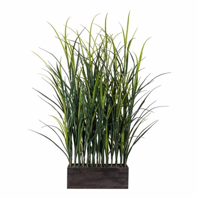 120 cm - Iarba artificiala decorativa in jardiniera neagra din lemn. Dimensiunea suportului tip jardiniera 60x10x13 cm.