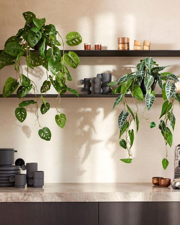 80 cm - Planta artificiala curgatoare Monstera verde in ghiveci negru din plastic si sfoara pentru agatat. Element decorativ perfect pentru casa, spatii comerciale, spatii de birou, terase, balcoane, conturand imagini deosebite.